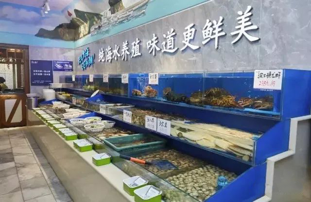 例如,很多蒸汽海鲜餐厅,海鲜明档又宽又高,以倾斜状呈现在顾客眼前,摆放着数十种鲜活食材,还原出类似海鲜批发市场的摊位,给人新鲜、丰富的印象。