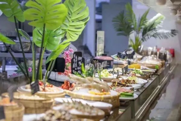 菜品陈列应注意形似凌乱,实则有序;卫生细节不放松,形似杂乱却能做到干净而无异味。