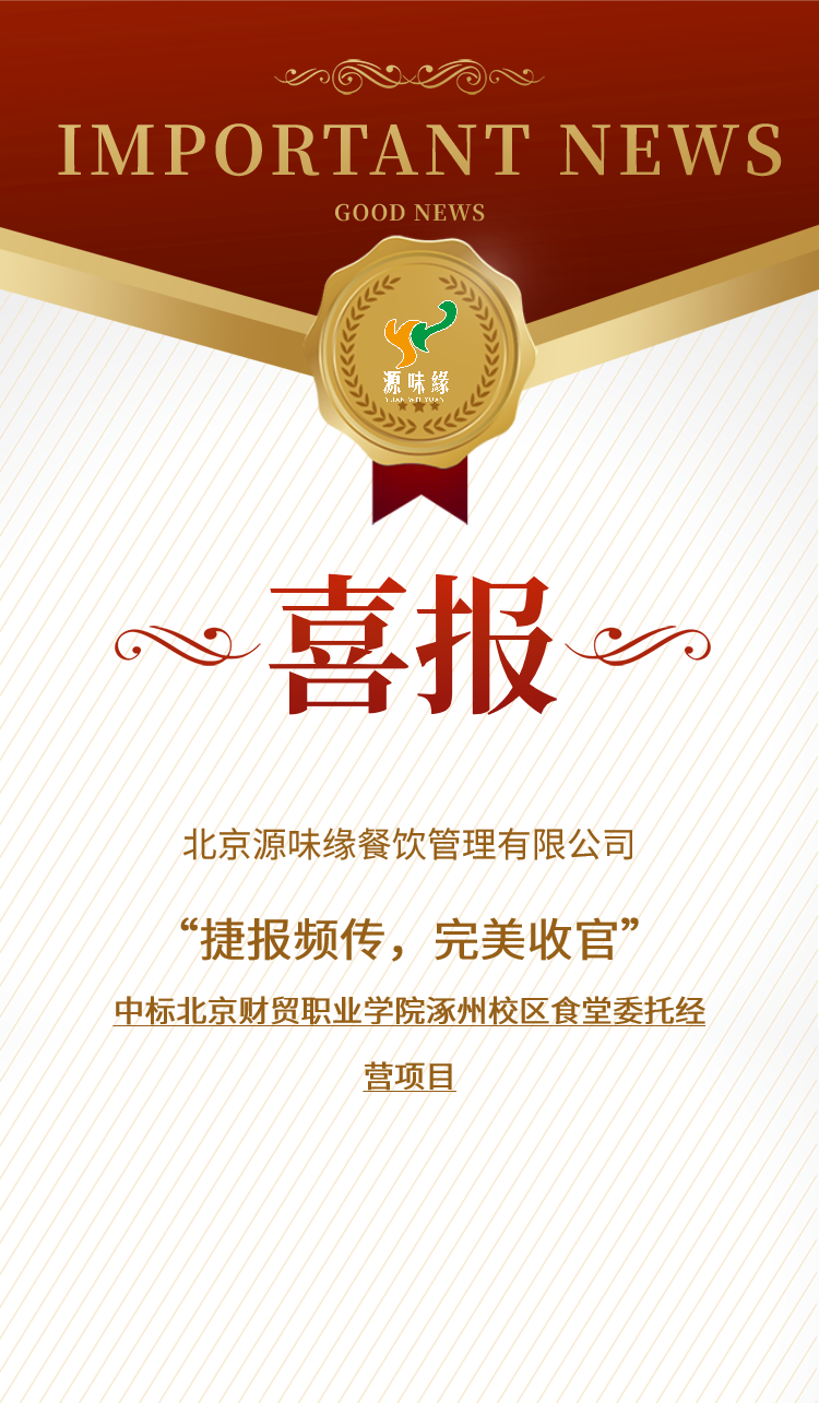 喜报 | 年终捷报-中标北京财贸职业学院涿州校区食堂