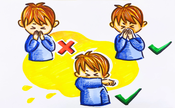 02 打喷嚏遮住口鼻,来不及时用肘关节帮忙。