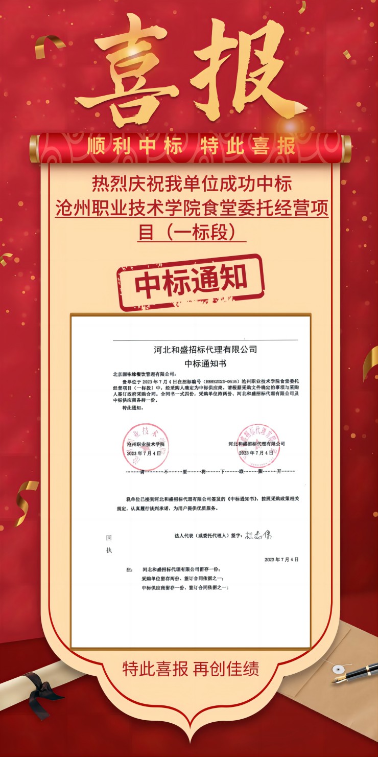 最近,华亿线上平台(集团)官方网站成功中标沧州职业技术学院食堂委托经营项目中的第一标段——第二食堂。这是一项备受关注的招标活动。
