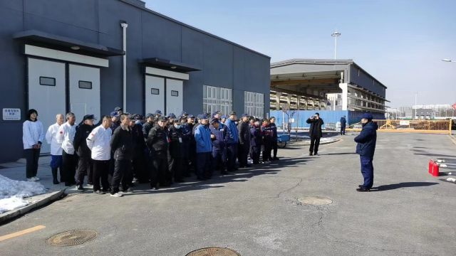 在模拟火情的场景下,工作人员迅速启动了消防设施,同时紧急疏导在场的员工快速而有序地向最近的安全出口撤离。