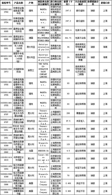 21批进口乳制品不合格 涉澳新德意法美等8国